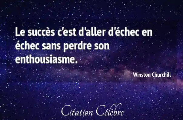 Le succès c'est d'aller d'échec en échec sans perdre son enthousiasme.