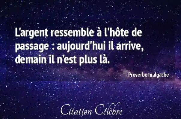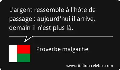 L'argent ressemble à l'hôte de passage : aujourd'hui il arrive, demain il n'est plus là.