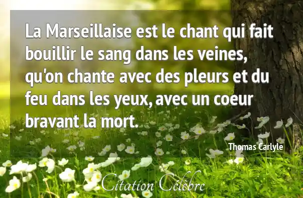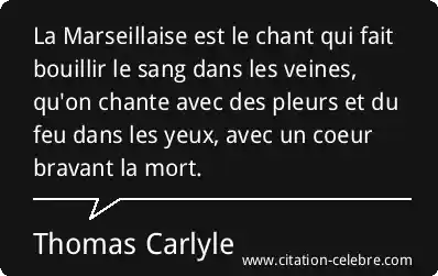 La Marseillaise est le chant qui fait bouillir le sang dans les veines, qu'on chante avec des pleurs et du feu dans les yeux, avec un coeur bravant la mort.