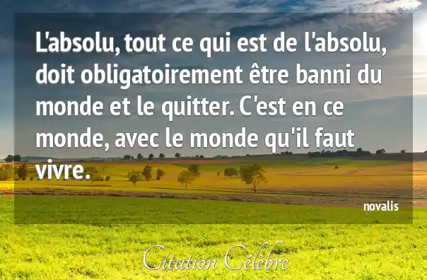 L'absolu, tout ce qui est de l'absolu, doit obligatoirement être banni du monde et le quitter. C'est en ce monde, avec le monde qu'il faut vivre.