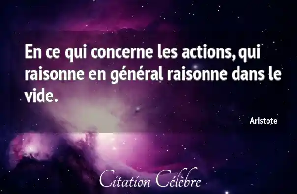 En ce qui concerne les actions, qui raisonne en général raisonne dans le vide.