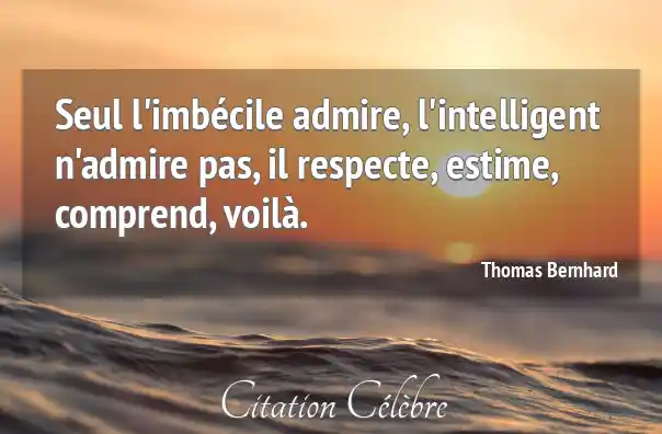 Seul l'imbécile admire, l'intelligent n'admire pas, il respecte, estime, comprend, voilà.