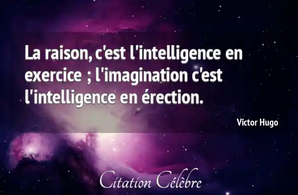 La raison, c'est l'intelligence en exercice ; l'imagination c'est l'intelligence en érection.