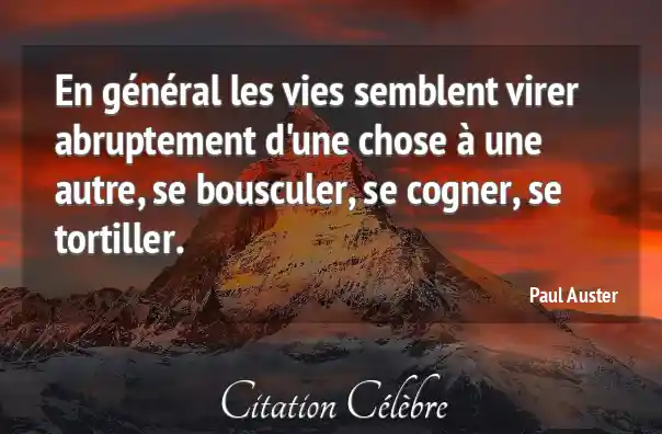 En général les vies semblent virer abruptement d'une chose à une autre, se bousculer, se cogner, se tortiller.