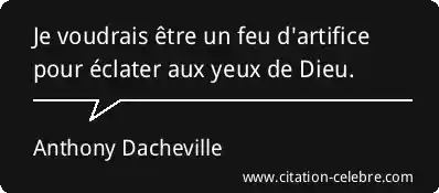 Je voudrais être un feu d'artifice pour éclater aux yeux de Dieu.