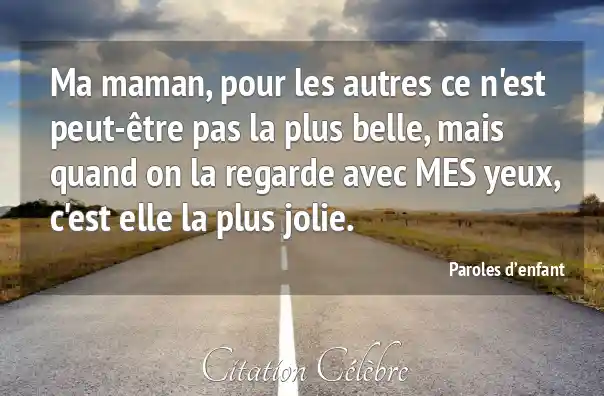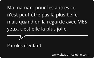 Ma maman, pour les autres ce n'est peut-être pas la plus belle, mais quand on la regarde avec MES yeux, c'est elle la plus jolie.