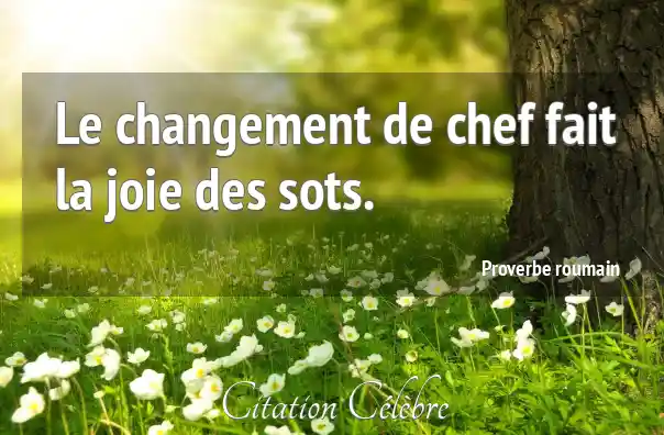 Proverbe  Roumain Changement : Le changement de chef fait la joie des sots....