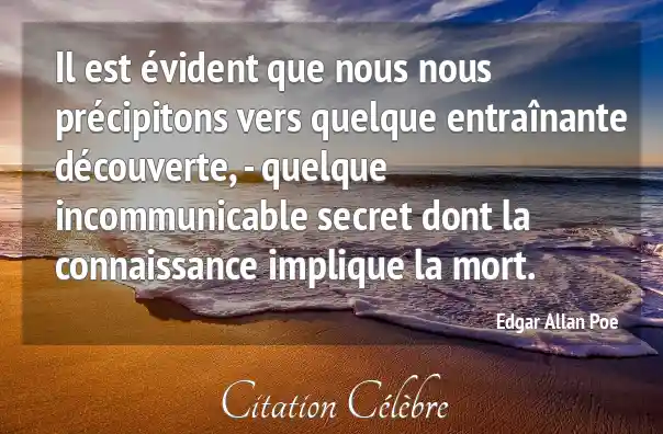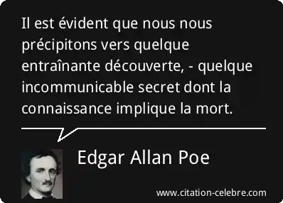 Il est évident que nous nous précipitons vers quelque entraînante découverte, - quelque incommunicable secret dont la connaissance implique la mort.