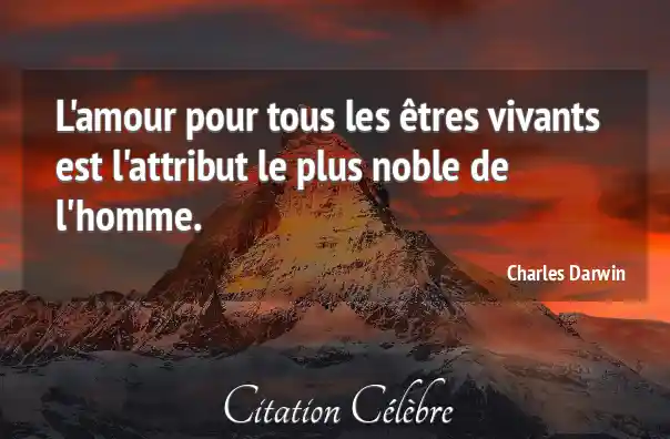 Citation Charles Darwin amour : L'amour pour tous les êtres vivants est l'attribut le plus...