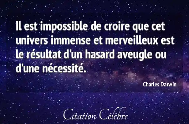 Il est impossible de croire que cet univers immense et merveilleux est le résultat d'un hasard aveugle ou d'une nécessité.