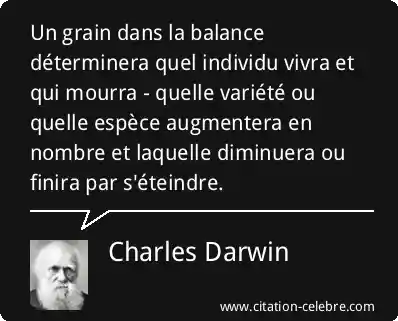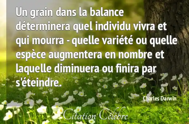 Un grain dans la balance déterminera quel individu vivra et qui mourra - quelle variété ou quelle espèce augmentera en nombre et laquelle diminuera ou finira par s'éteindre.