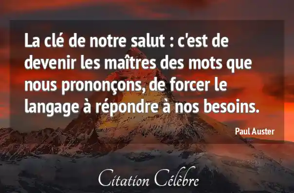 La clé de notre salut : c'est de devenir les maîtres des mots que nous prononçons, de forcer le langage à répondre à nos besoins.