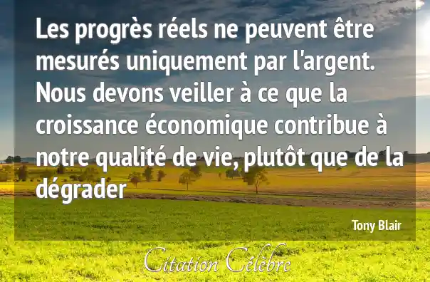 Les progrès réels ne peuvent être mesurés uniquement par l'argent. Nous devons veiller à ce que la croissance économique contribue à notre qualité de vie, plutôt que de la dégrader