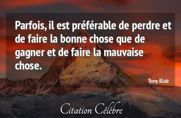 Citation Tony Blair chose : Parfois, il est préférable de perdre et de faire la...