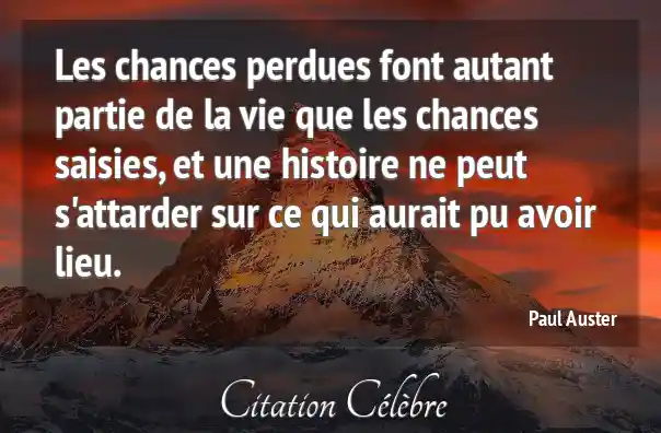 Les chances perdues font autant partie de la vie que les chances saisies, et une histoire ne peut s'attarder sur ce qui aurait pu avoir lieu.
