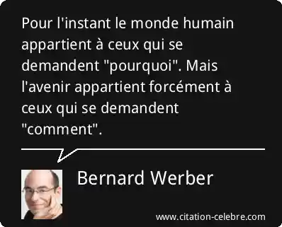 Pour l'instant le monde humain appartient à ceux qui se demandent "pourquoi". Mais l'avenir appartient forcément à ceux qui se demandent "comment".