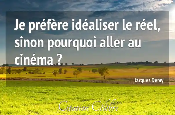 Je préfère idéaliser le réel, sinon pourquoi aller au cinéma ?