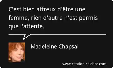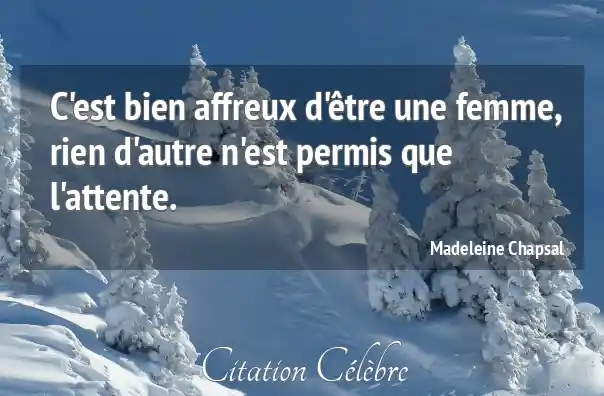 C'est bien affreux d'être une femme, rien d'autre n'est permis que l'attente.