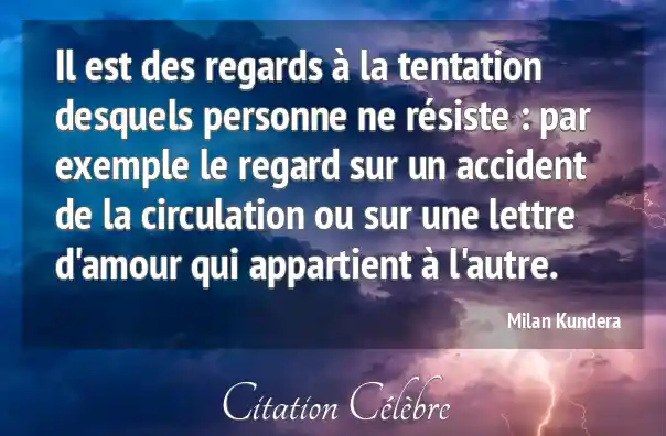 Il est des regards à la tentation desquels personne ne résiste : par exemple le regard sur un accident de la circulation ou sur une lettre d'amour qui appartient à l'autre.