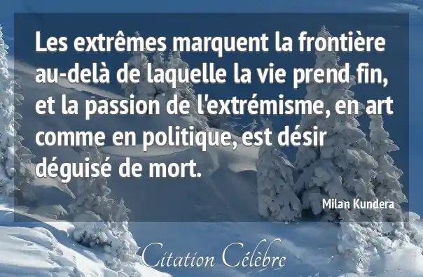 Les extrêmes marquent la frontière au-delà de laquelle la vie prend fin, et la passion de l'extrémisme, en art comme en politique, est désir déguisé de mort.