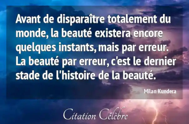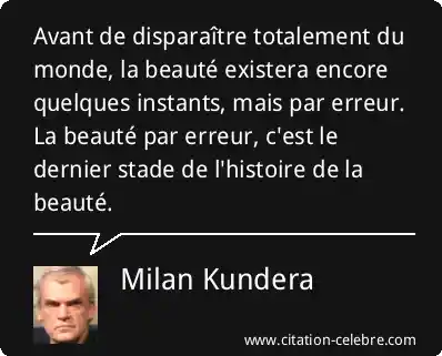 Avant de disparaître totalement du monde, la beauté existera encore quelques instants, mais par erreur. La beauté par erreur, c'est le dernier stade de l'histoire de la beauté.