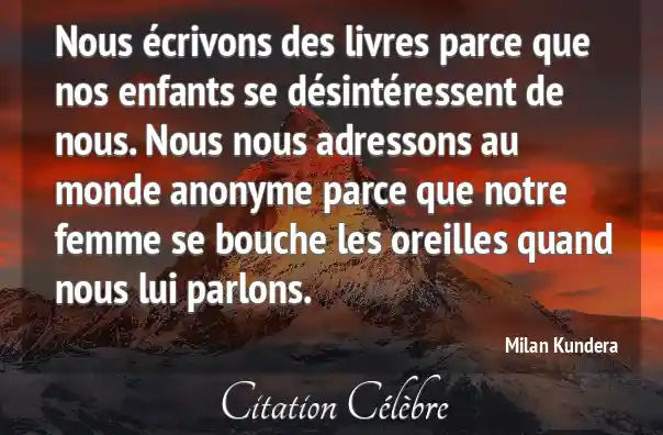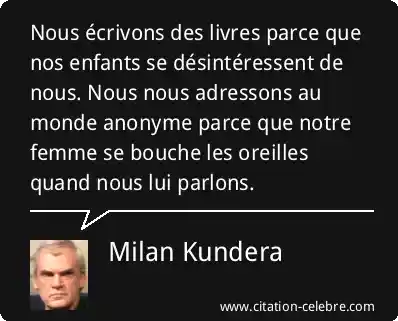 Nous écrivons des livres parce que nos enfants se désintéressent de nous. Nous nous adressons au monde anonyme parce que notre femme se bouche les oreilles quand nous lui parlons.
