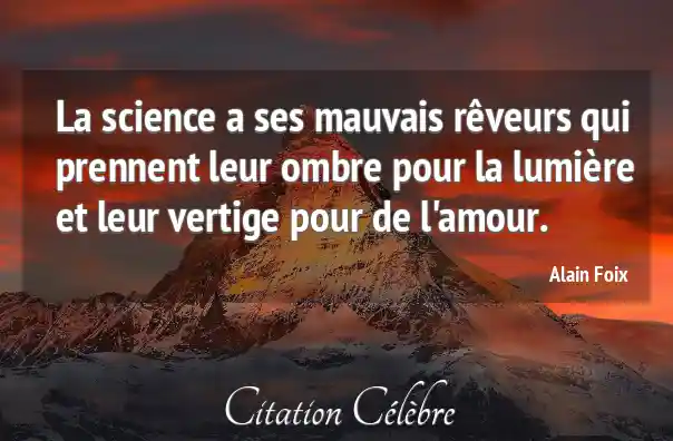 La science a ses mauvais rêveurs qui prennent leur ombre pour la lumière et leur vertige pour de l'amour.