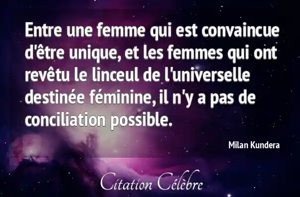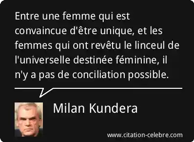 Entre une femme qui est convaincue d'être unique, et les femmes qui ont revêtu le linceul de l'universelle destinée féminine, il n'y a pas de conciliation possible.