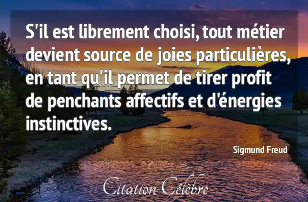 S'il est librement choisi, tout métier devient source de joies particulières, en tant qu'il permet de tirer profit de penchants affectifs et d'énergies instinctives.