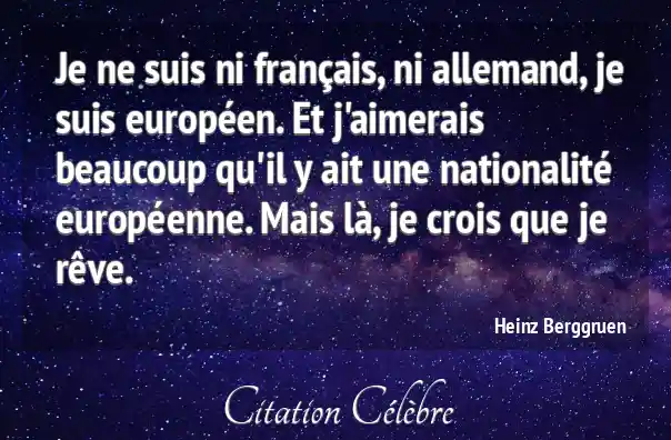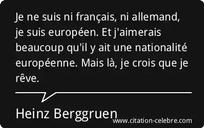 Je ne suis ni français, ni allemand, je suis européen. Et j'aimerais beaucoup qu'il y ait une nationalité européenne. Mais là, je crois que je rêve.