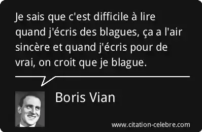 Je sais que c'est difficile à lire quand j'écris des blagues, ça a l'air sincère et quand j'écris pour de vrai, on croit que je blague.
