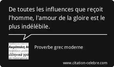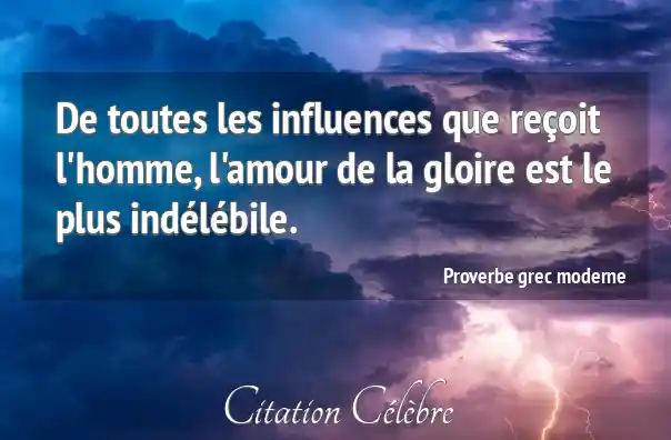 De toutes les influences que reçoit l'homme, l'amour de la gloire est le plus indélébile.