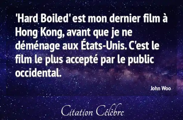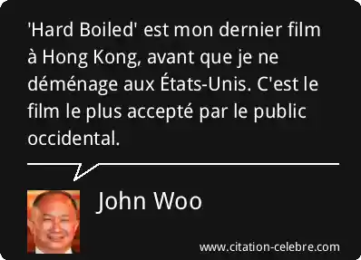 'Hard Boiled' est mon dernier film à Hong Kong, avant que je ne déménage aux États-Unis. C'est le film le plus accepté par le public occidental.