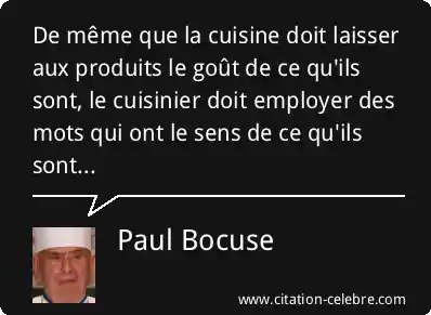 De même que la cuisine doit laisser aux produits le goût de ce qu'ils sont, le cuisinier doit employer des mots qui ont le sens de ce qu'ils sont...