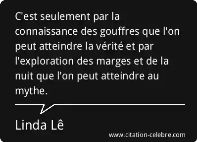 C'est seulement par la connaissance des gouffres que l'on peut atteindre la vérité et par l'exploration des marges et de la nuit que l'on peut atteindre au mythe.