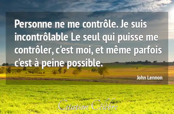Personne ne me contrôle. Je suis incontrôlable Le seul qui puisse me contrôler, c'est moi, et même parfois c'est à peine possible.