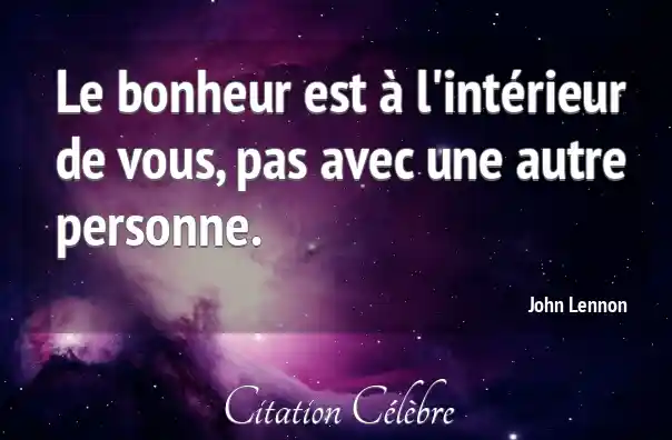Le bonheur est à l'intérieur de vous, pas avec une autre personne.