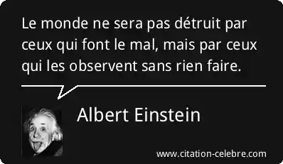 Le monde ne sera pas détruit par ceux qui font le mal, mais par ceux qui les observent sans rien faire.