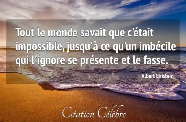 Tout le monde savait que c'était impossible, jusqu'à ce qu'un imbécile qui l'ignore se présente et le fasse.