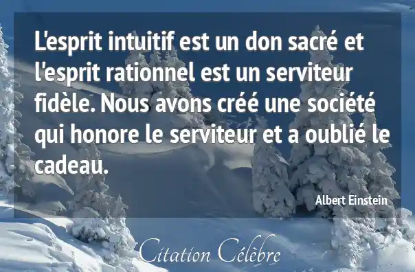 L'esprit intuitif est un don sacré et l'esprit rationnel est un serviteur fidèle. Nous avons créé une société qui honore le serviteur et a oublié le cadeau.
