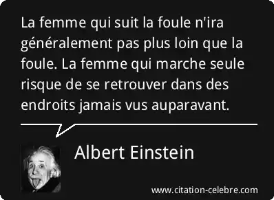 La femme qui suit la foule n'ira généralement pas plus loin que la foule. La femme qui marche seule risque de se retrouver dans des endroits jamais vus auparavant.