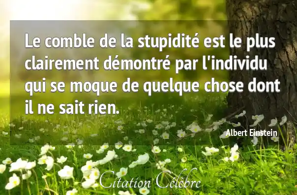 Le comble de la stupidité est le plus clairement démontré par l'individu qui se moque de quelque chose dont il ne sait rien.