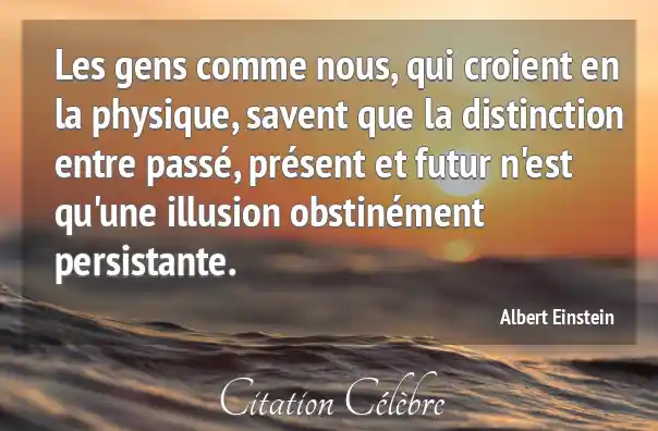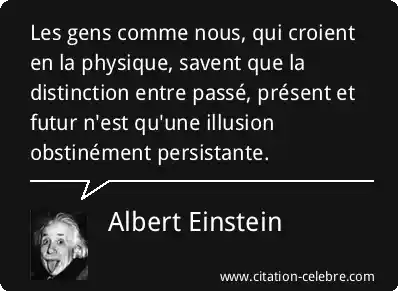 Les gens comme nous, qui croient en la physique, savent que la distinction entre passé, présent et futur n'est qu'une illusion obstinément persistante.