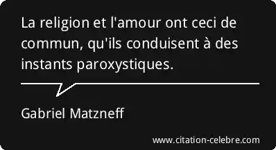 La religion et l'amour ont ceci de commun, qu'ils conduisent à des instants paroxystiques.