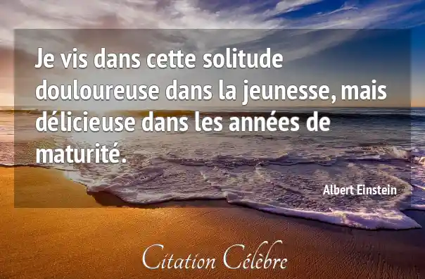 Je vis dans cette solitude douloureuse dans la jeunesse, mais délicieuse dans les années de maturité.
