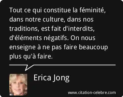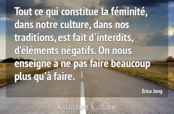 Tout ce qui constitue la féminité, dans notre culture, dans nos traditions, est fait d'interdits, d'éléments négatifs. On nous enseigne à ne pas faire beaucoup plus qu'à faire.