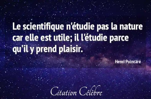 Le scientifique n'étudie pas la nature car elle est utile; il l'étudie parce qu'il y prend plaisir.