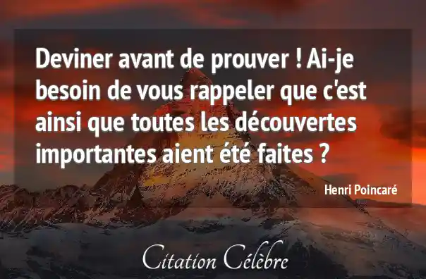 Deviner avant de prouver ! Ai-je besoin de vous rappeler que c'est ainsi que toutes les découvertes importantes aient été faites ?