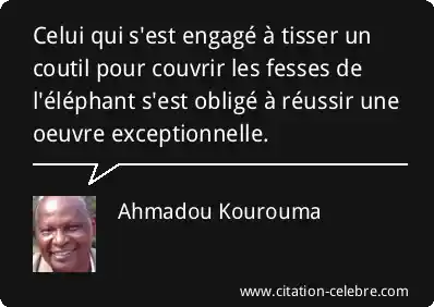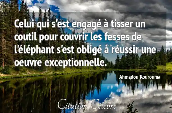 Celui qui s'est engagé à tisser un coutil pour couvrir les fesses de l'éléphant s'est obligé à réussir une oeuvre exceptionnelle.