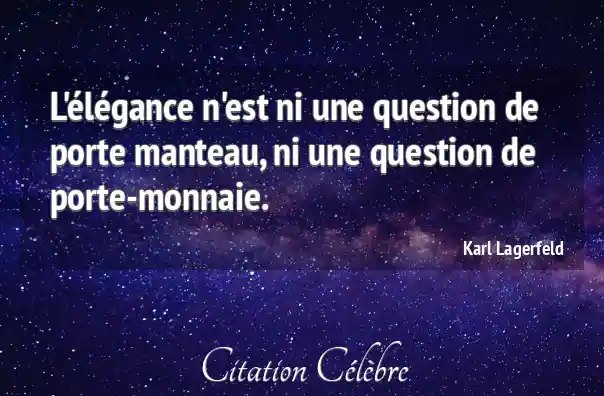 L'élégance n'est ni une question de porte manteau, ni une question de porte-monnaie.